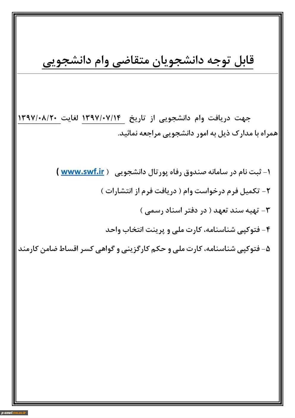 مدارک مورد نیاز وام دانشجویی