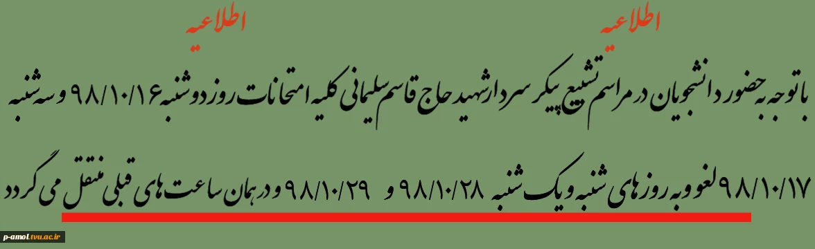 لغو امتحانات روزهای دوشنبه و سه شنبه 2