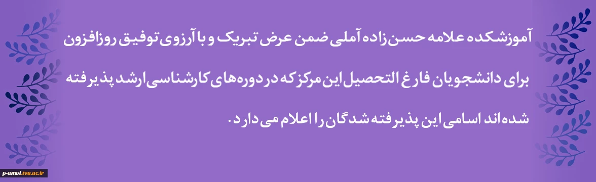 اسامی فارغ التحصیلان کارشناسی که در دوره های کارشناسی ارشد پذیرفته شدند. 2