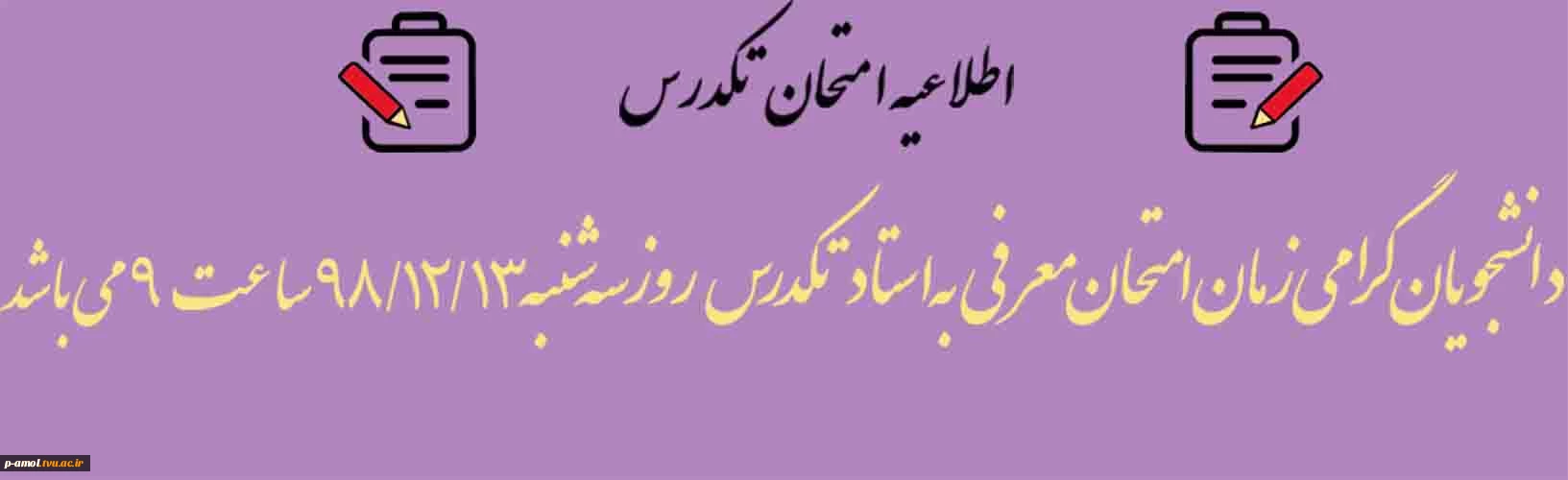 زمان امتحان تکدرس 2