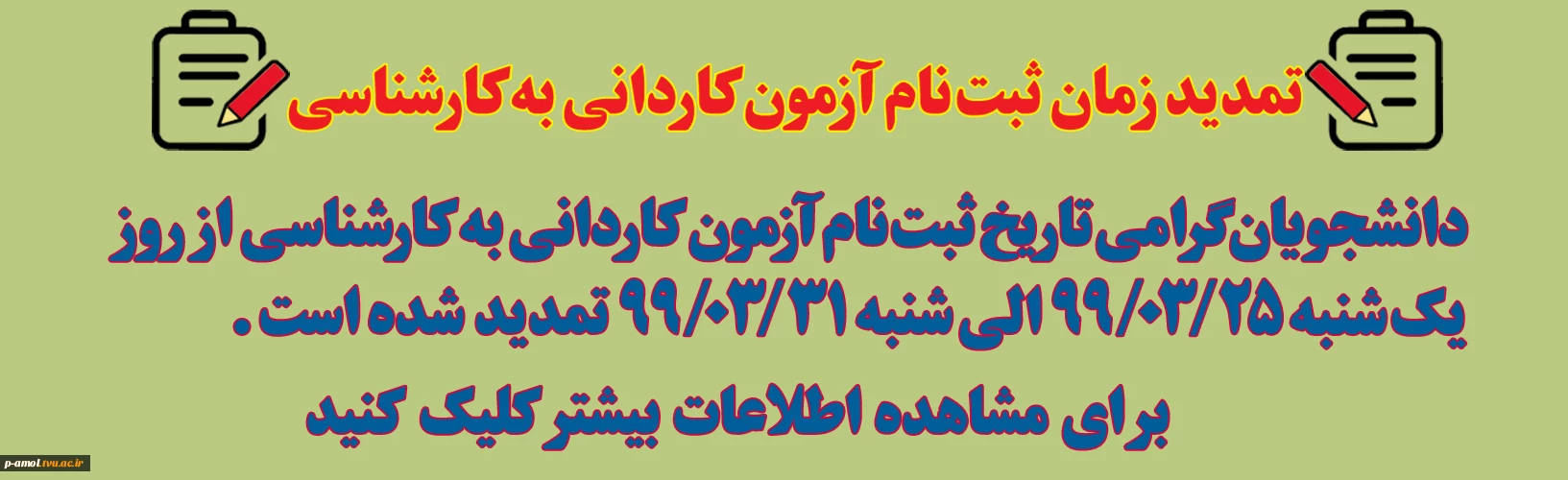 تمدید زمان ثبت نام آزمون کاردانی به کارشناسی 2