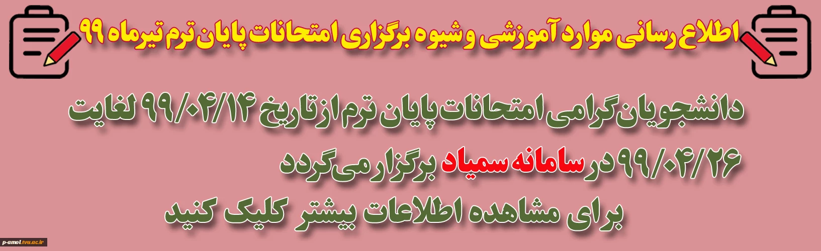 اطلاع رسانی امتحانات پایان ترم تیرماه 99 2