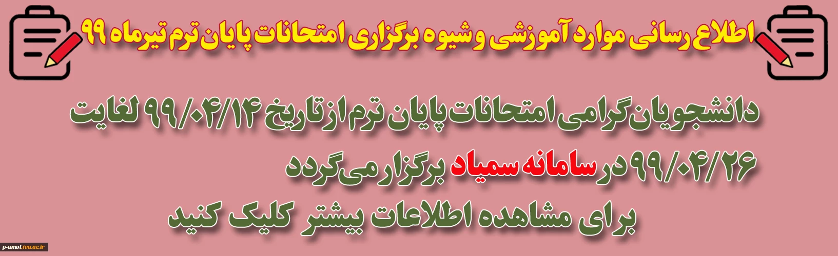 اطلاع رسانی امتحانات پایان ترم تیرماه 99 2