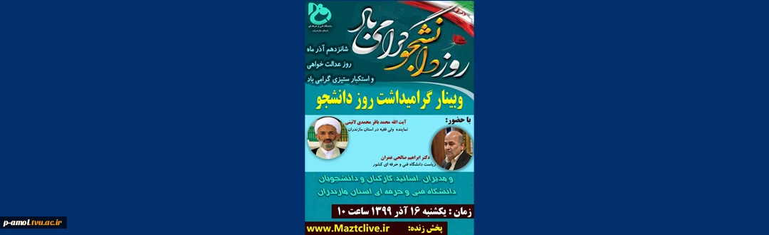 امتیاز دهید : وبینار گرامیداشت روز دانشجو در دانشگاه فنی و حرفه ای استان مازندران 2 جمعه 14 آذر 1399 ساعت 16:21