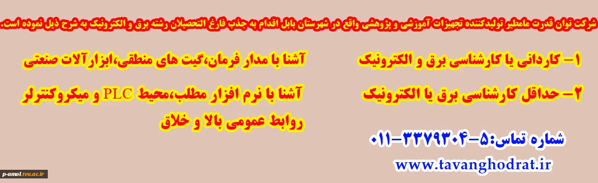 امتیاز دهید : جذب فارغ التحصیلان رشته برق و الکترونیک در شرکت توان قدرت 2 یکشنبه 21 دی 1399 ساعت 14:20