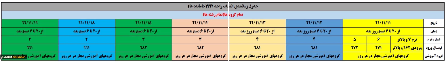جدول زمانی جامانده ها