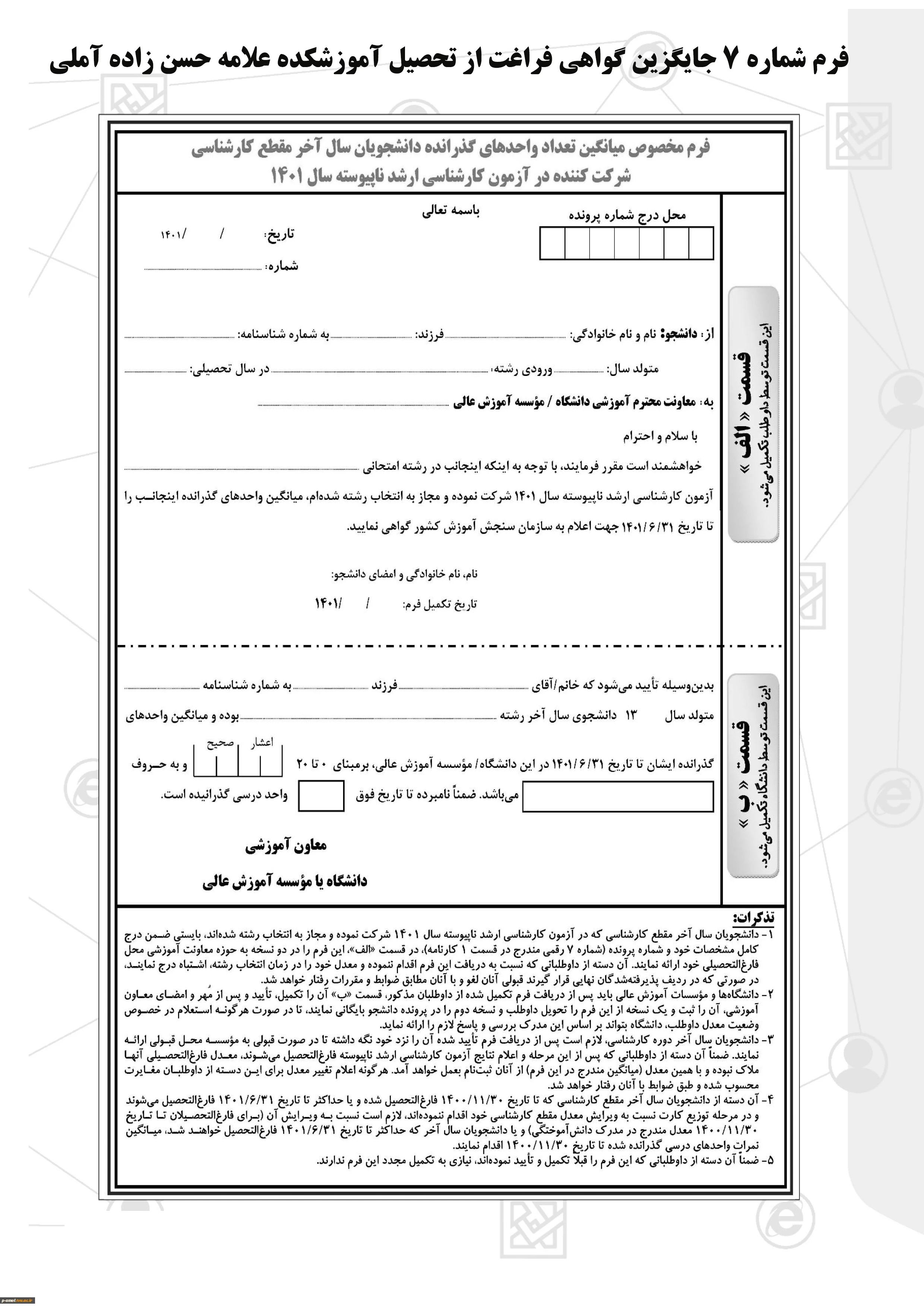 فرم شماره 7 دوره کارشناسی جایگزین گواهی فراغت از تحصیل 2