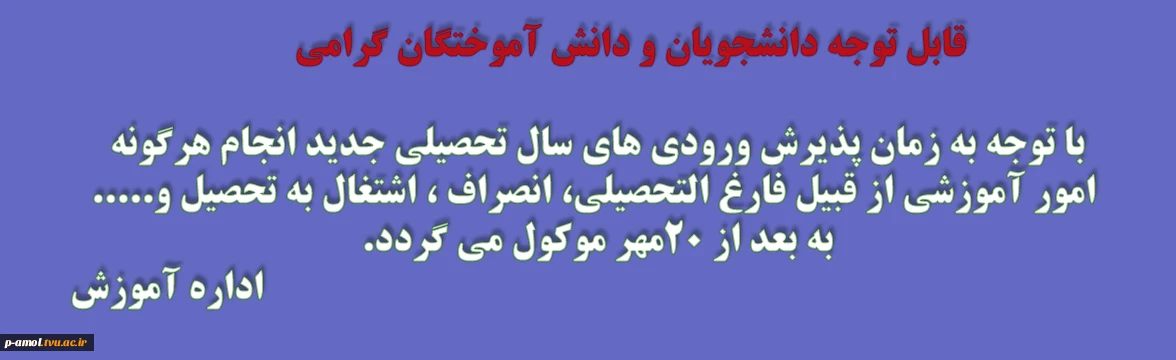 امتیاز دهید : انجام امور آموزشی به بعد از ثبت نام ورودی های جدید موکول می گردد. 2 یکشنبه 27 شهریور 1401 ساعت 8:36