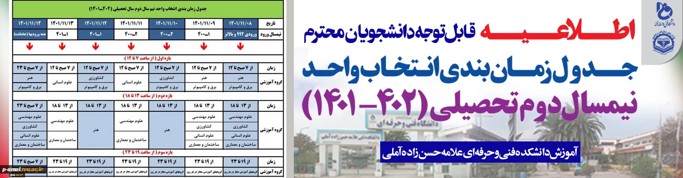 جدول انتخاب واحد ترم بهمن 1401 2