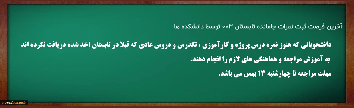 آخرین فرصت برای ثبت نمره جامانده از تابستان 2