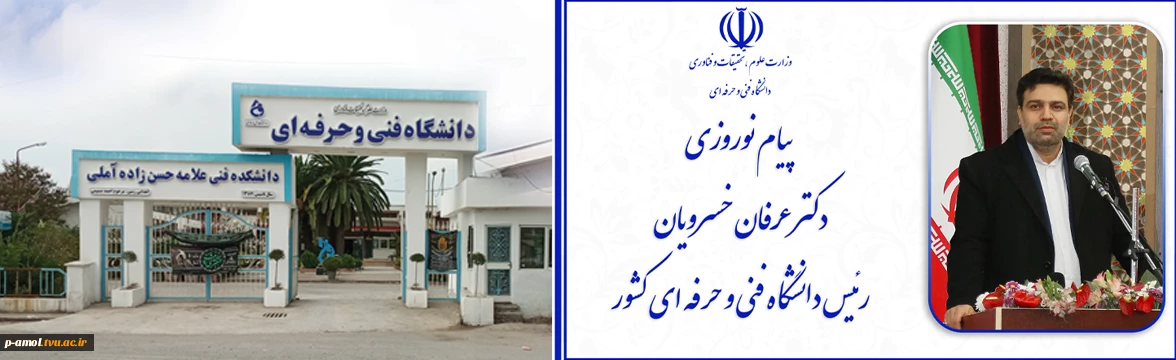 امتیاز دهید : پیام تبریک نوروزی دکتر خسرویان به اعضای خانواده بزرگ دانشگاه فنی و حرفه ای 2 دوشنبه 14 فروردین 1402 ساعت 12:54