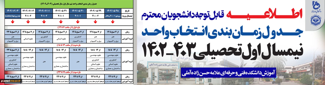 اطلاعیه زمانبندی انتخاب واحد ترم مهر3-1402 2