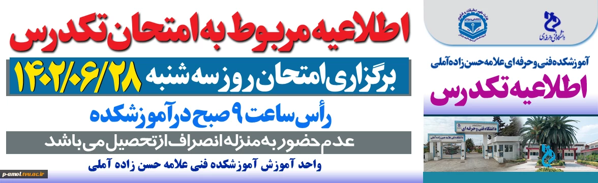 برگزاری آزمون تکدرس 2