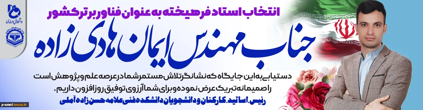 امتیاز دهید : انتخاب آقای مهندس ایمان هادی زاده به عنوان فناور برتر کشور 2 دوشنبه 13 آذر 1402 ساعت 9:02