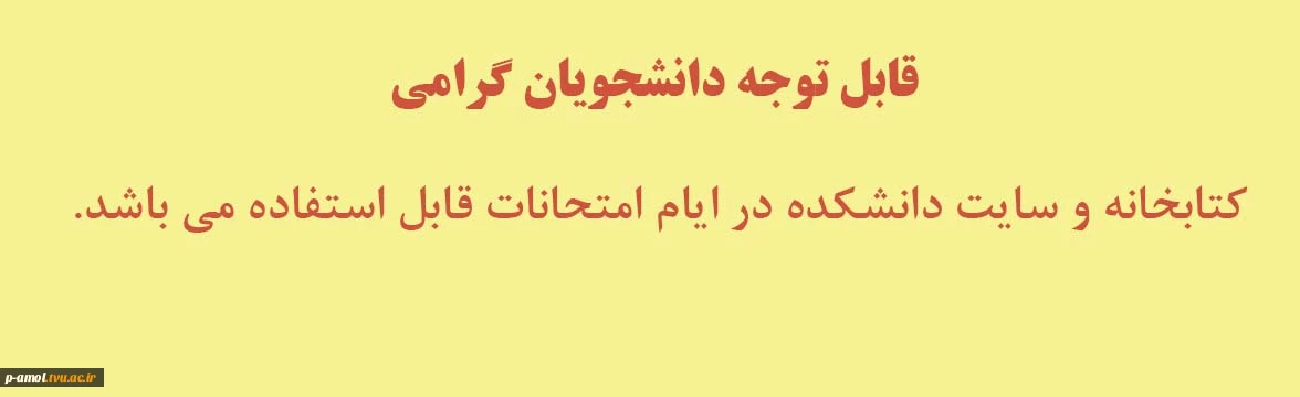 امتیاز دهید : کتابخانه و سایت در ایام امتحانات در خدمت دانشجویان عزیز می باشد. 2 شنبه 23 دی 1402 ساعت 15:03