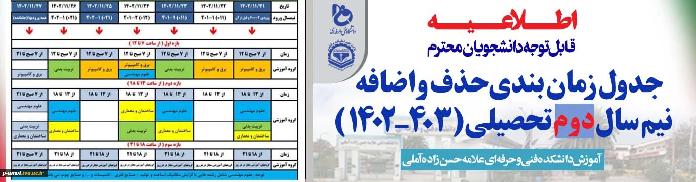 جدول زمانبندی حذف و اضافه ترم بهمن 1402  2