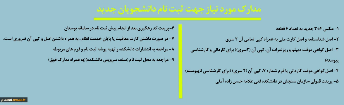 مدارک مورد نیاز ثبت نام دانشجویان جدیدالورود 1402 2