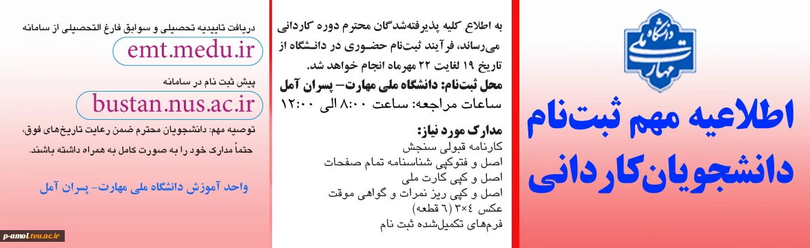 اطلاعیه ثبت نام کاردانی 2