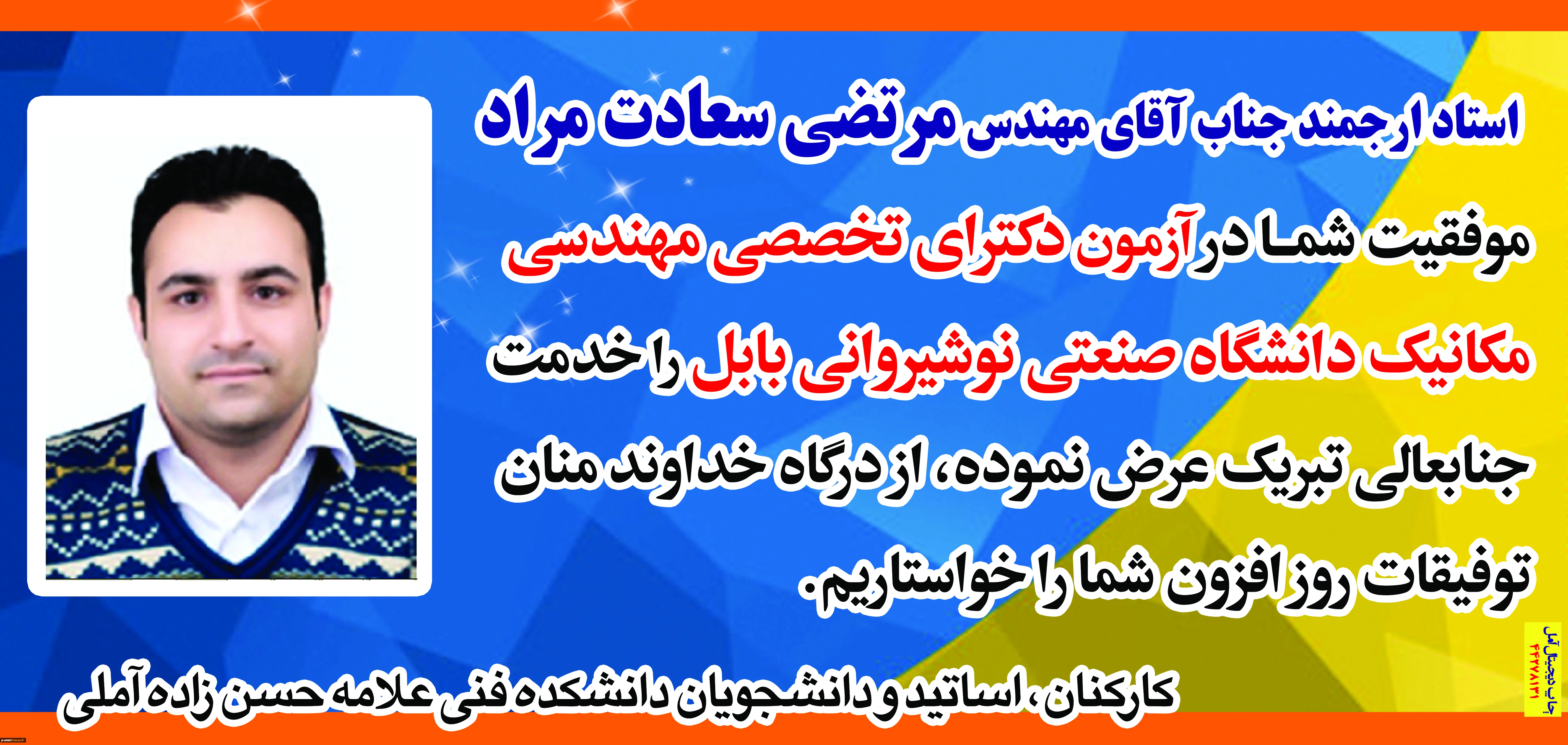 موفقیت استاد و دانشجوی گرامی در تحصیلات تکمیلی